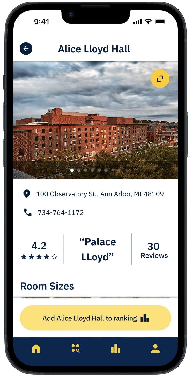 We implemented robust filtering, visual-heavy dorm details, dorm ranking, and ranking sharing features to help users quickly and independently identify and prioritize the dorms that meet their search criteria.